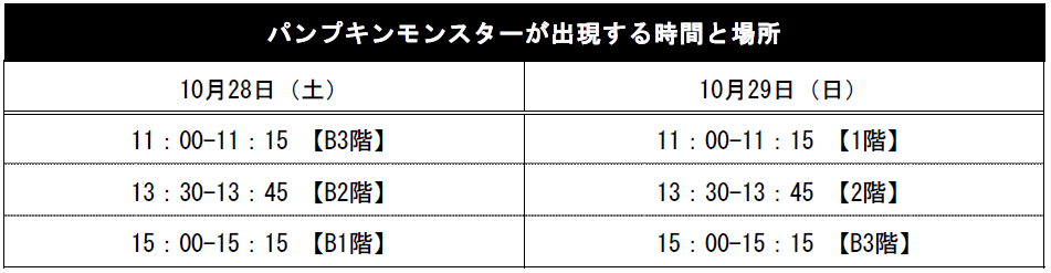 1日3回、15分だけ館内にパンプキンモンスターが出現します。