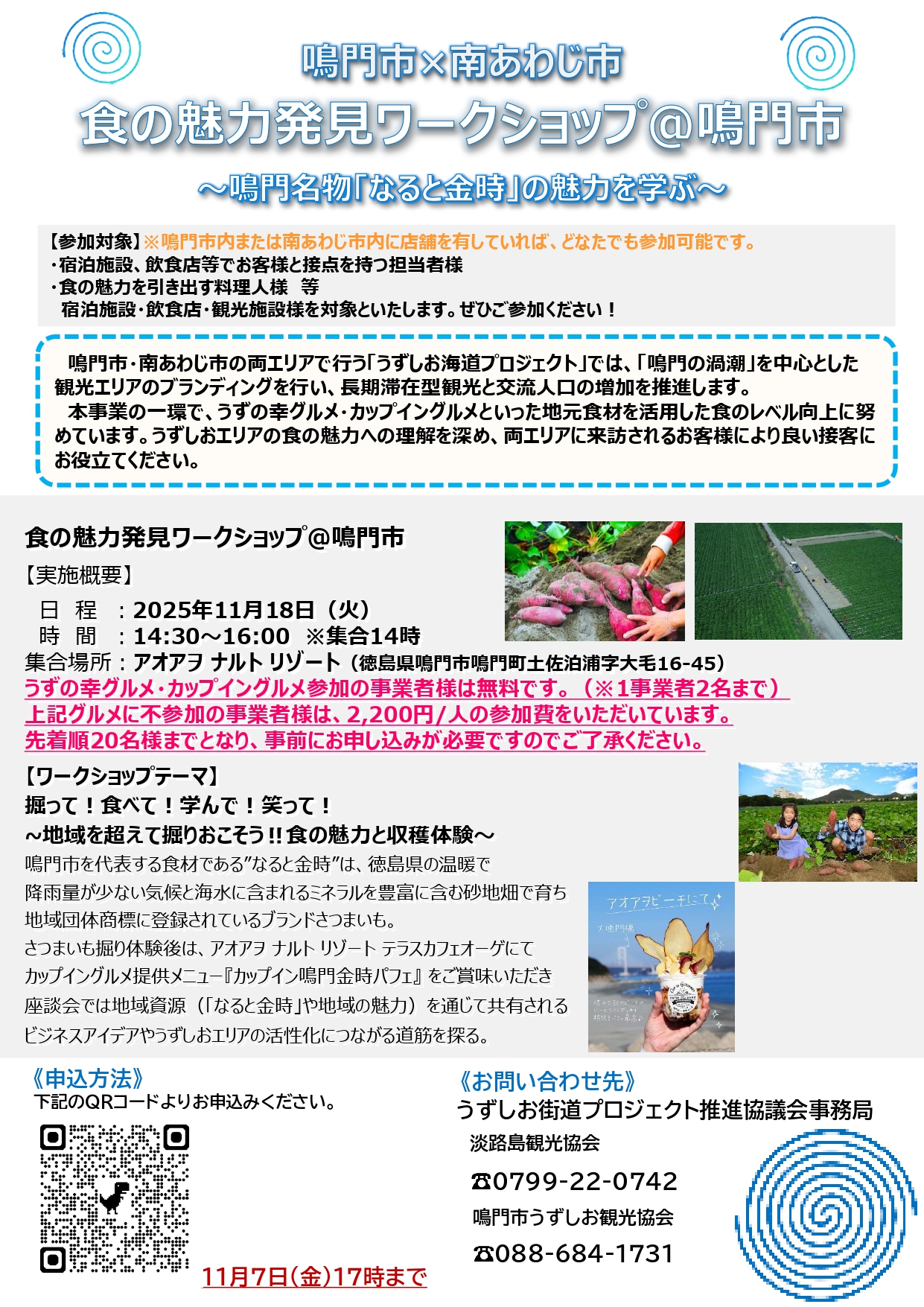 今回、うずしおエリアの食の魅力への理解を深め、両エリアに来訪されるお客様により良い接客にお役立ていただけるワークショップを開催いたします。