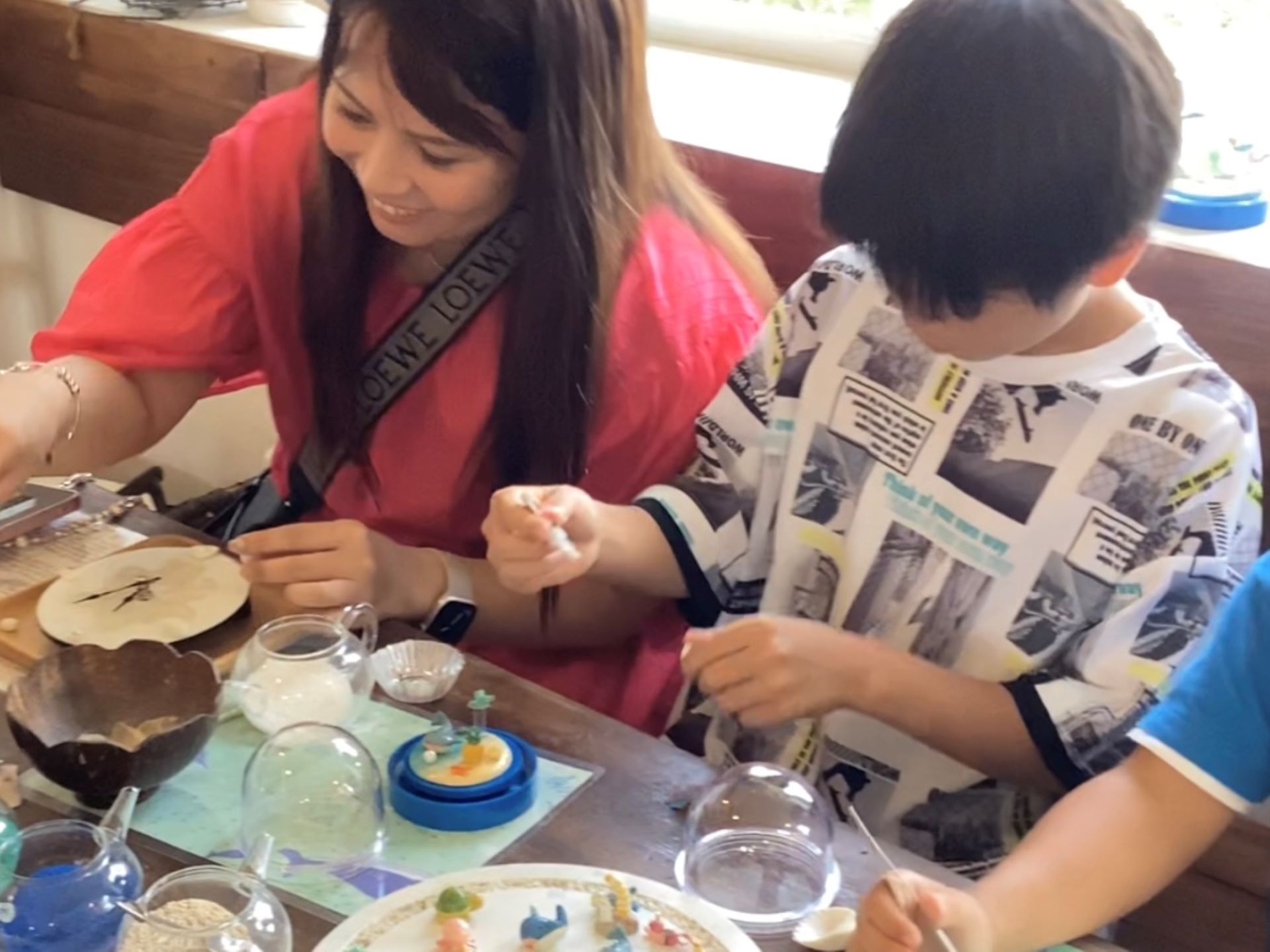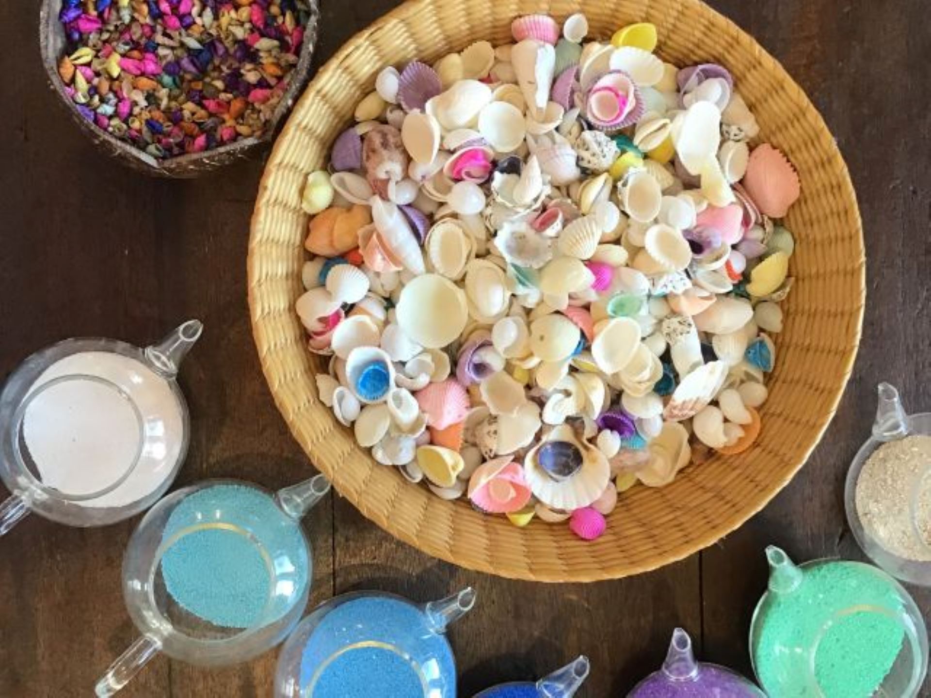 海を見ながら貝殻やビーチグラスを使った、フォトフレームやキャンドル、