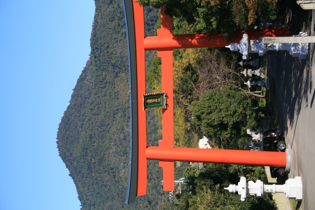 ○本殿裏手にある大麻山を、約90分(片道)ほど登った山頂に奥宮「峯神社」があります。峯大神(みねのおおみかみ)が祀られています。遙拝所は本殿の裏手にございます。