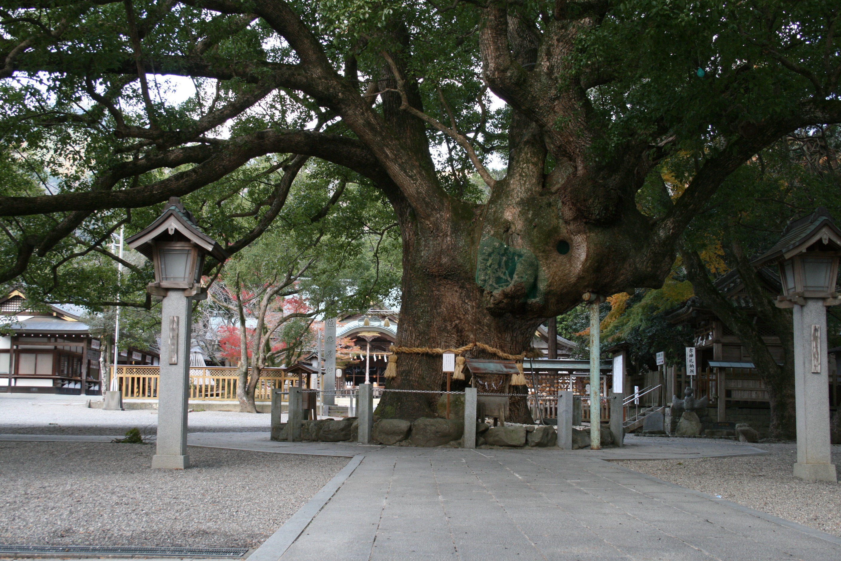 ○境内にはご神木の楠やドイツ橋があります。大楠の木樹齢は1000年と言われています。鳴門市の天然記念物に指定されています。