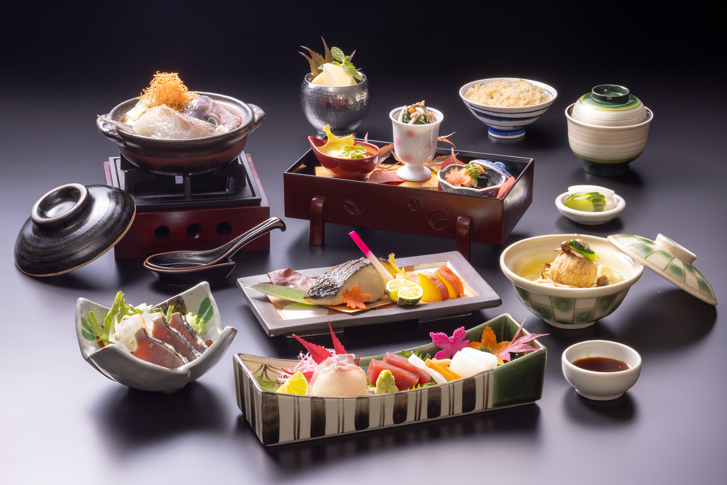 鳴門海峡で育まれた鯛など近海の魚介を使用した会席がご堪能いただけます。