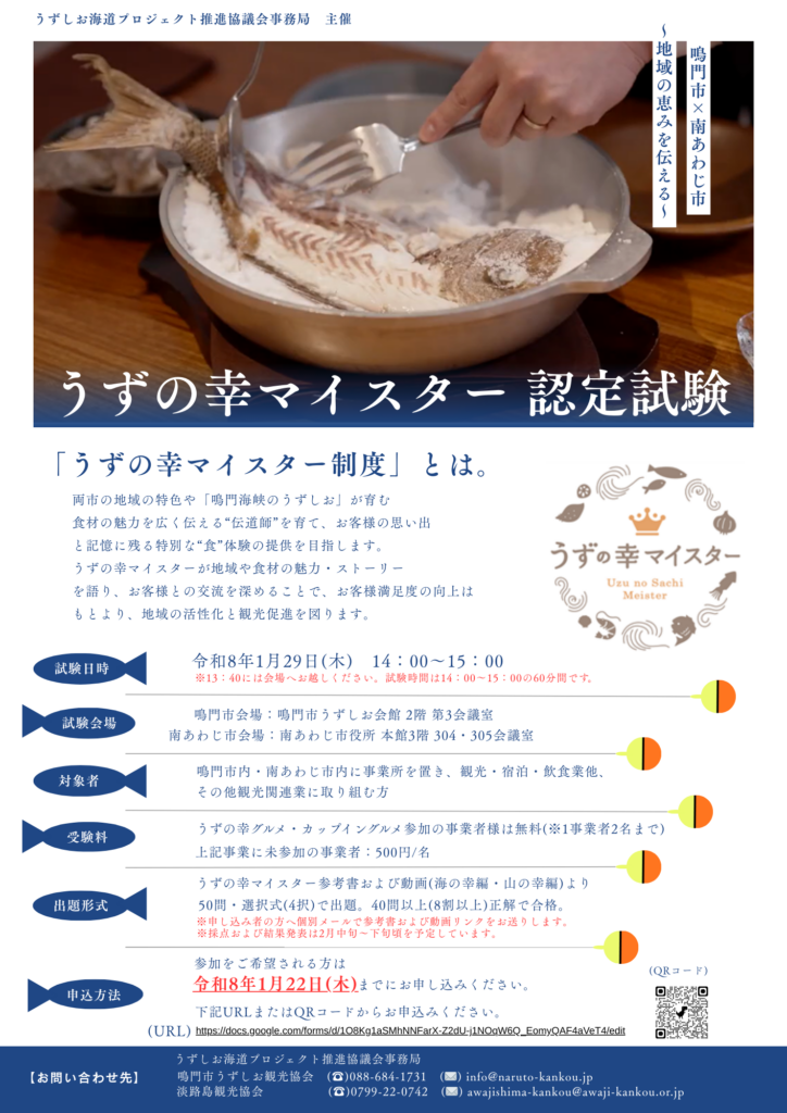 今年も「うずの幸マイスター認定試験」が1月29日(木)に開催されます!